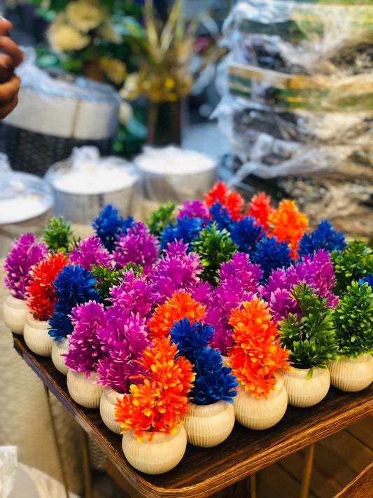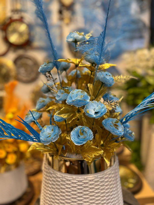 Artificial peach Blue and White Flower Bouquet in Unbreakable Plastic Pot – Home & Office Décor
