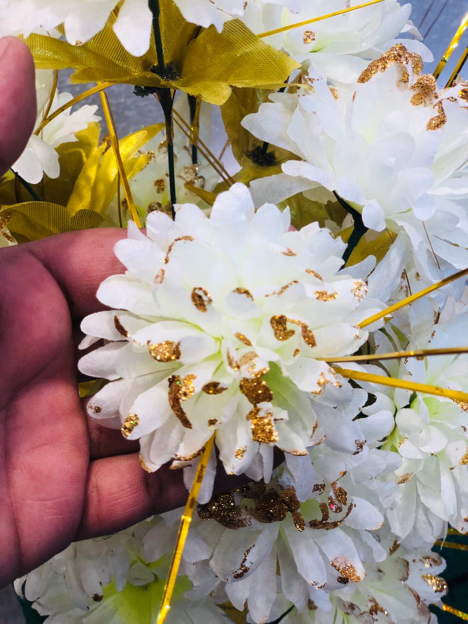 Elegant White & Gold Artificial Flower Arrangement in Ceramic Vase