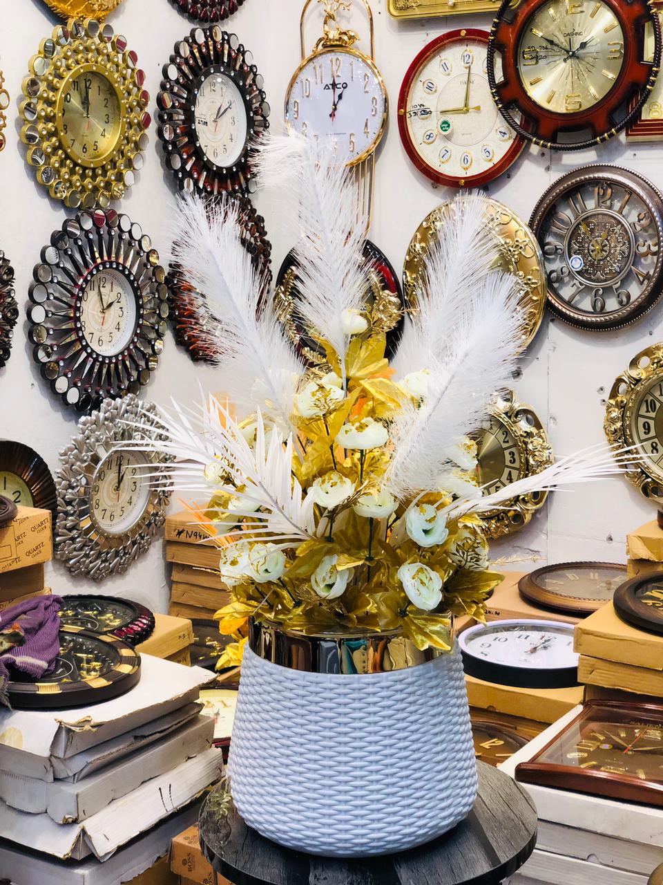 Premium Artificial Flower Arrangement in White & Gold Pot – 28” Elegant Decor with 36 Blooms & Feather Stem for Home, Office & Showrooms