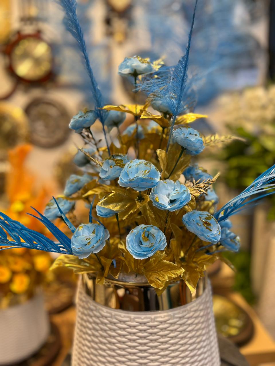 Premium Artificial Flower Arrangement in White & Gold Pot – 28” Elegant Decor with 36 Blooms & Feather Stem for Home, Office & Showrooms